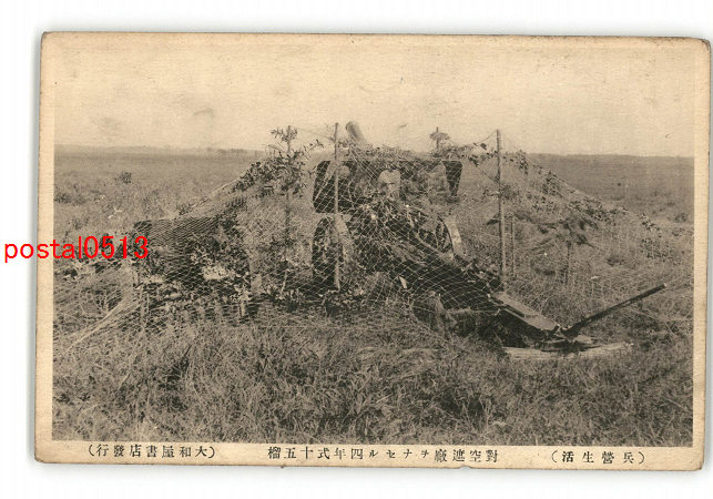 兵営生活 対空遮廠をなせる四年式十五榴 *傷み有り