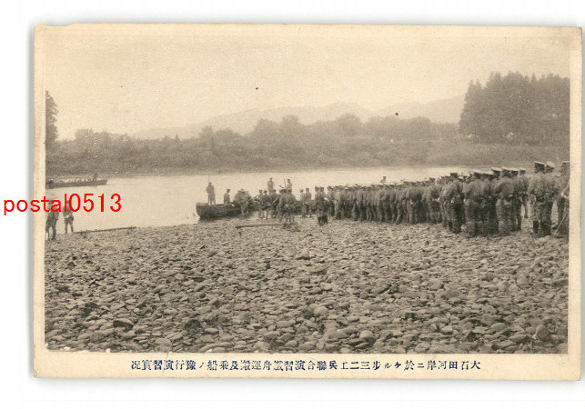 山形 大石田河岸に於ける歩32工兵連合演習鉄舟運搬及乗船の予行演習実況 *傷み有り