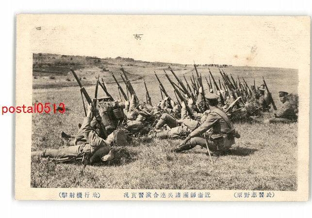 千葉 於習志野原 近衛師団諸兵連合演習実況 飛行機射撃 *傷み有り