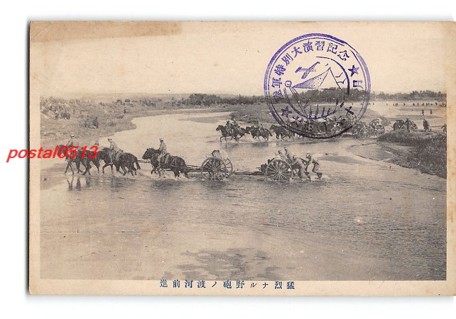 東京 大正10年 陸軍特別大演習 猛烈なる野砲の渡河前進 *傷み有り