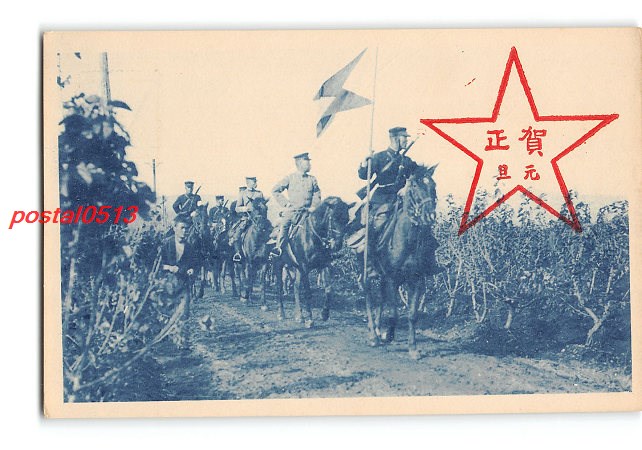 年賀状アート絵葉書 軍隊 騎兵 *傷み有り