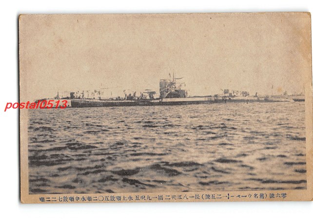 潜水艦 零6号 旧名ウーペー125号 長183呎2幅19呎5水上噸数502噸水中噸数722噸 *傷み有り