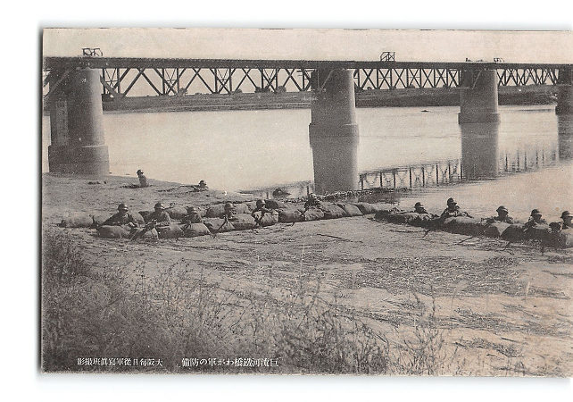 満州? 巨流河鉄橋わが軍の防備 *傷み有り
