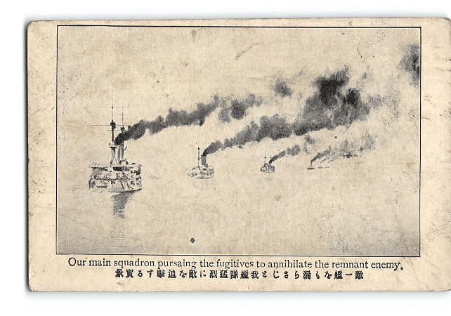 敵一艦をも漏らさじと我艦隊猛烈に敵を追撃する実景 *傷み有り