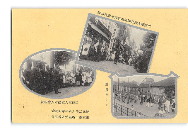 東京 出征軍人歓送国歌奉唱青年団長指揮 鶯谷ガード出征軍人歓送軍人会祝詞 *傷み有り