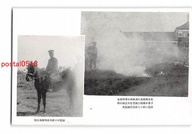 群馬 北甘楽郡青年訓練所中等学校女子青年団連合演習 富岡中学校庭に於ける煙幕実演