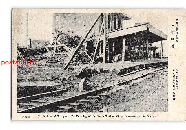 満州 昭和12年支那事変 上海戦線 南の停車場爆撃の惨状 *傷み有り