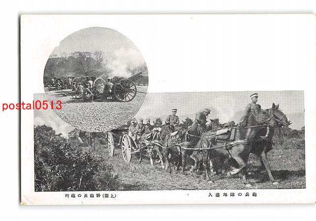 軍隊生活 砲兵の陣地進入 上図 野砲兵の砲列 *折れ有り
