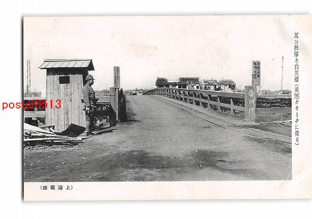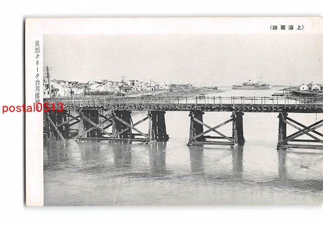 満州 上海戦跡 思ひ出深き白川橋 呉淞クリークに架る *アルバム跡有り