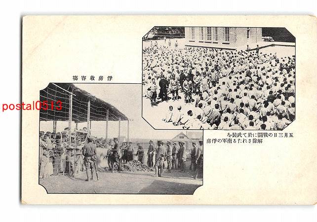 満州 済南事件? 浮虜収容場 5月3日の戦闘に於て武装を解除されたる南軍の浮虜 *角傷み有り
