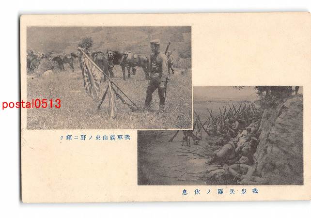 満州 我軍旗山東の野に輝く 我歩兵隊の休息