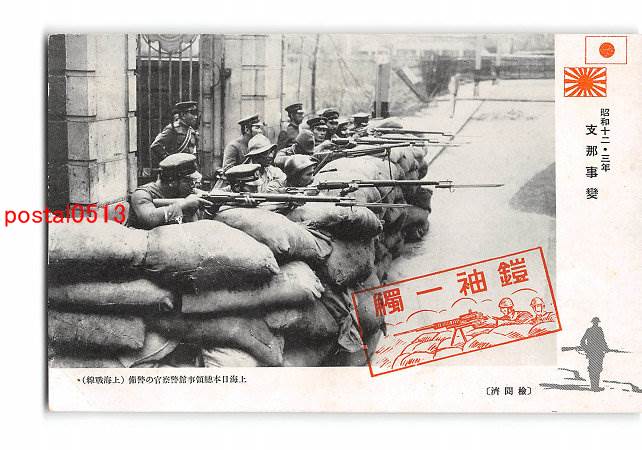満州 昭和12.3年支那事変 上海日本総領事館警察官の警備 上海戦線 *折れ有り