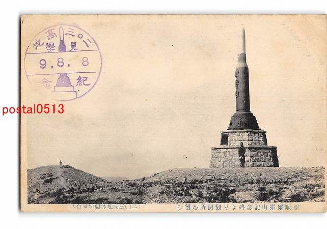 満州 旅順爾霊山記念碑より観測所を望む *折れ有り