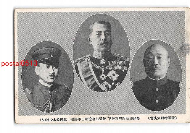 陸軍特別大演習 参謀総長閑院宮殿下 統監部幕僚杉山中将 右 幕僚鈴木少将 左