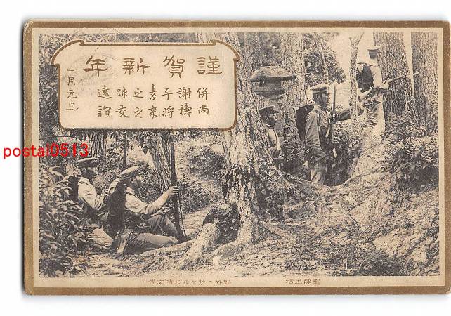 軍隊生活 野外に於ける歩哨交代 実逓便エンタイア *折れ有り