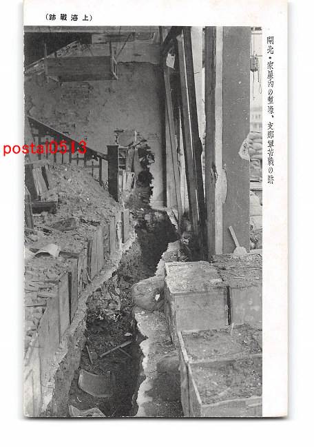 満州 上海戦跡 閘北 家屋内の塹壕 支那軍苦戦の跡