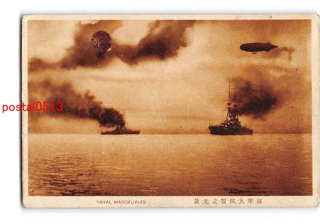 海軍大演習 軍艦と飛行船 *傷み有り