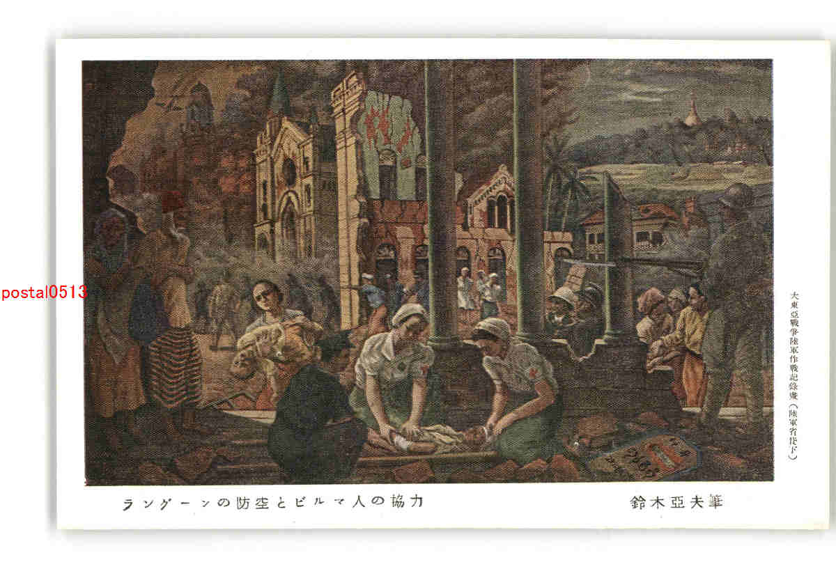 ラングーンの防空とビルマ人の協力 鈴木亜夫筆 *傷み有り