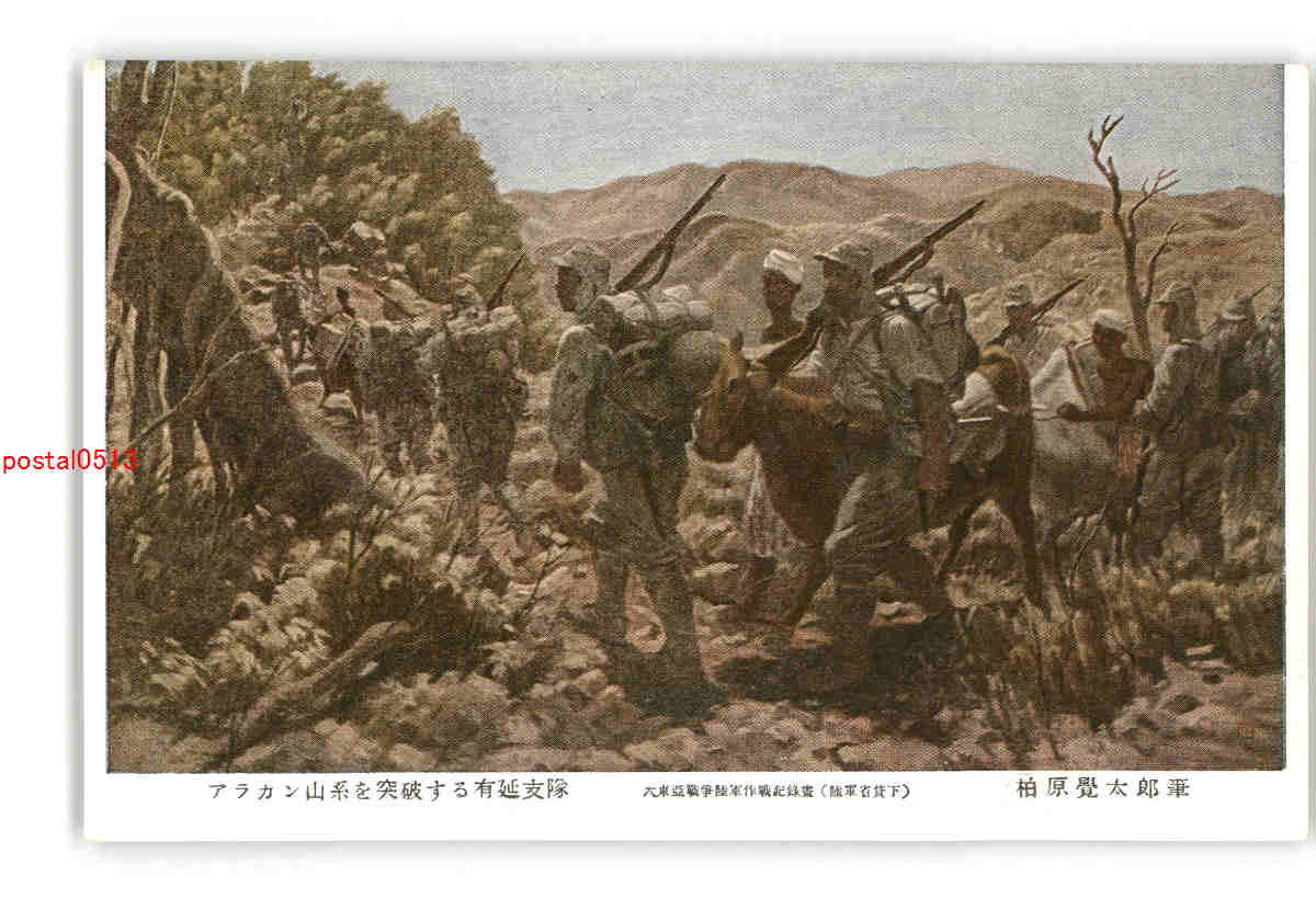 アラカン山系を突破する有延支隊 柏原覚太郎筆 *傷み有り