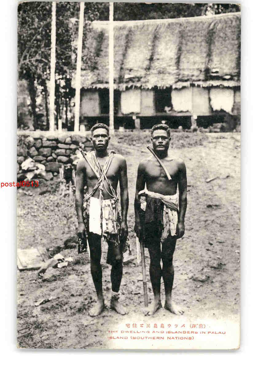 南洋 パラウ島島民と住宅 *折れ有り