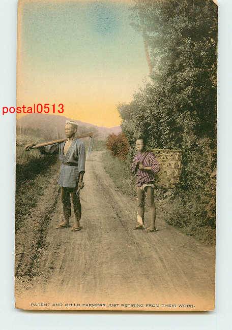 田舎農夫の生活 手彩色 父と子供 t