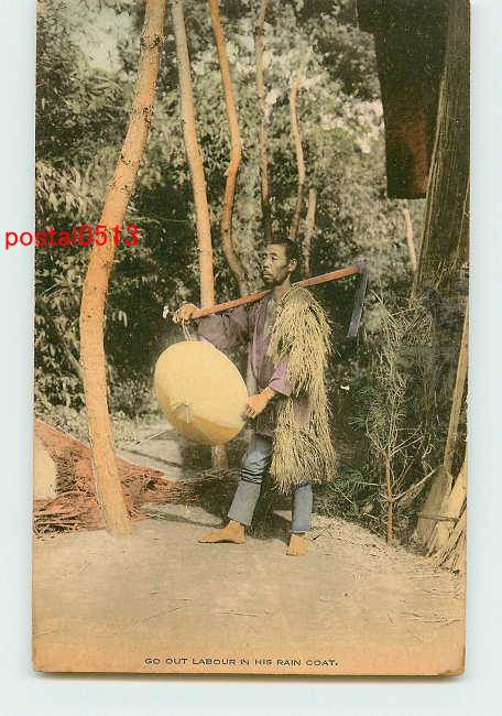 田舎農夫の生活 手彩色 蓑を着た男 t