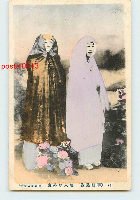 朝鮮 彩色 婦人の外出