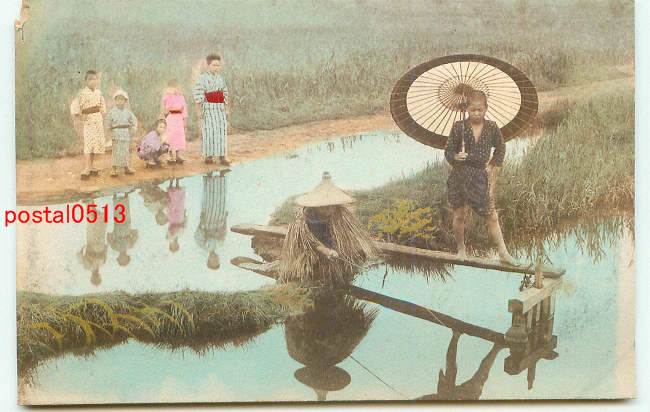 釣り人と子供 手彩色 t