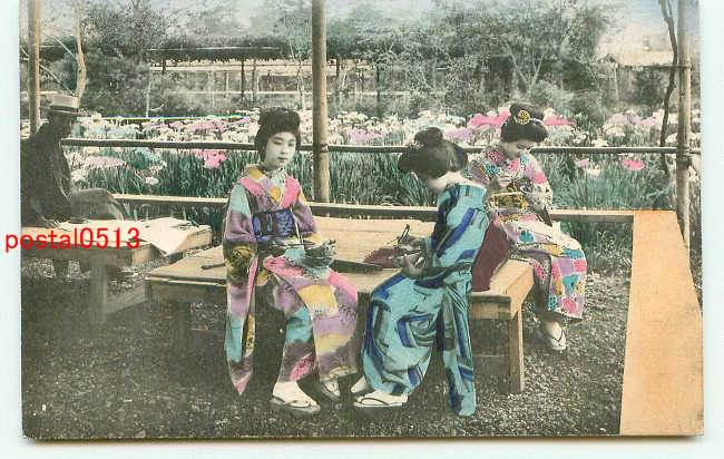 遊ぶ美人達 手彩色 t