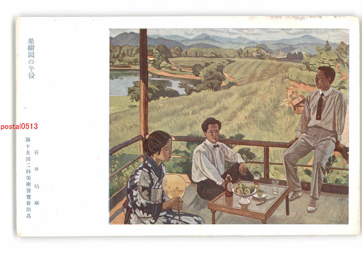 果樹園の午後 石井柏亭 第15回二科美術展覧会出品 *傷み有り