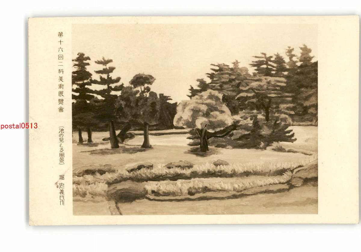 第16回二科美術展覧会 池の見える風景 堀忠義氏作 *傷み有り