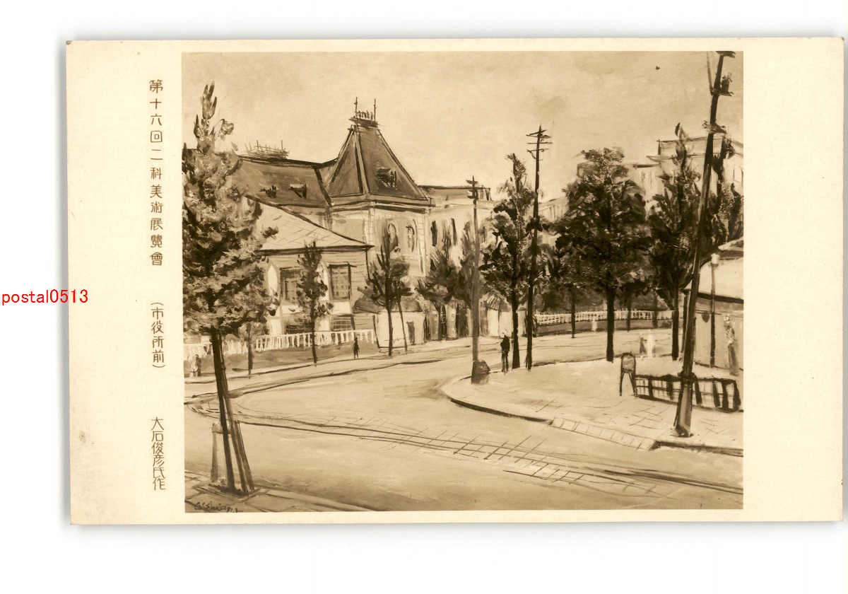 第16回二科美術展覧会 市役所前 大石俊彦氏作 *傷み有り