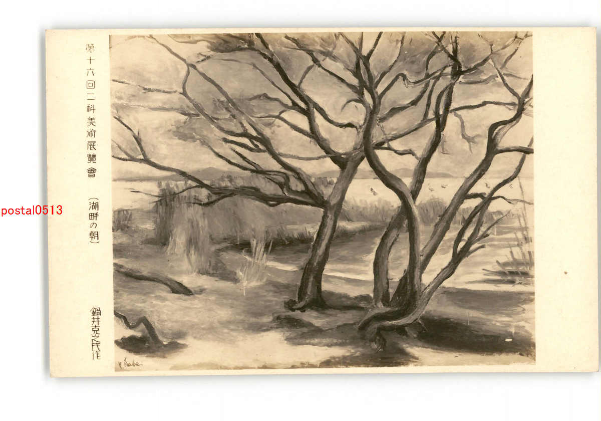 第16回二科美術展覧会 湖畔の朝 鍋井克之氏作 *傷み有り