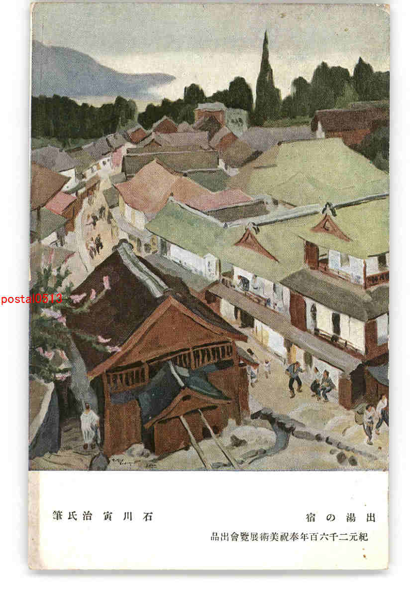出湯の宿 石川寅治氏筆 紀元2600年奉祝美術展覧会出品 *傷み有り