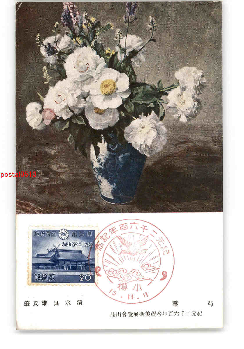 芍薬 清水良雄氏筆 紀元2600年奉祝美術展覧会出品 *傷み有り