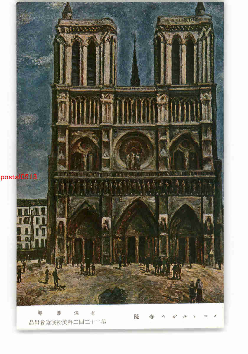 ノートルダム寺院 有偶善郎 第22回二科美術展覧会出品 *アルバム跡有り *傷み有り