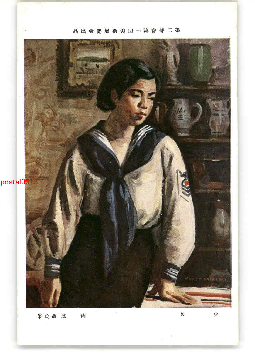 第2部会第一回美術展覧会出品 少女 南薫造氏筆 *アルバム跡有り *傷み有り