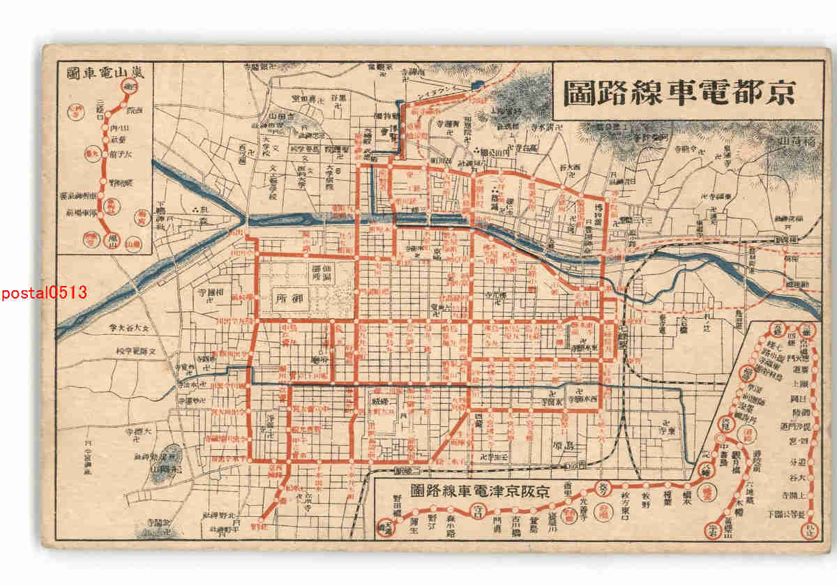 京都 京都電車線路図 *折れ有り *傷み有り