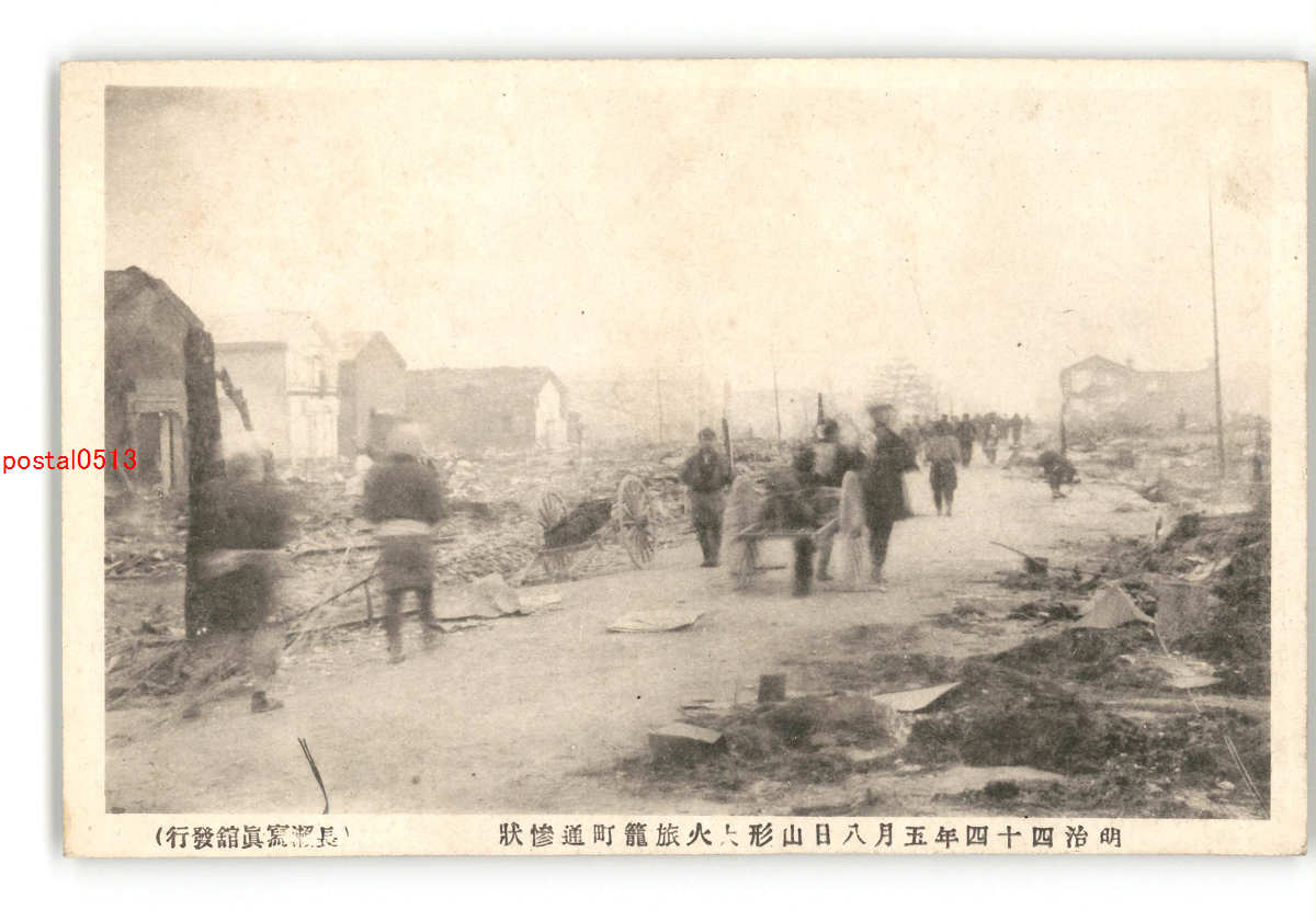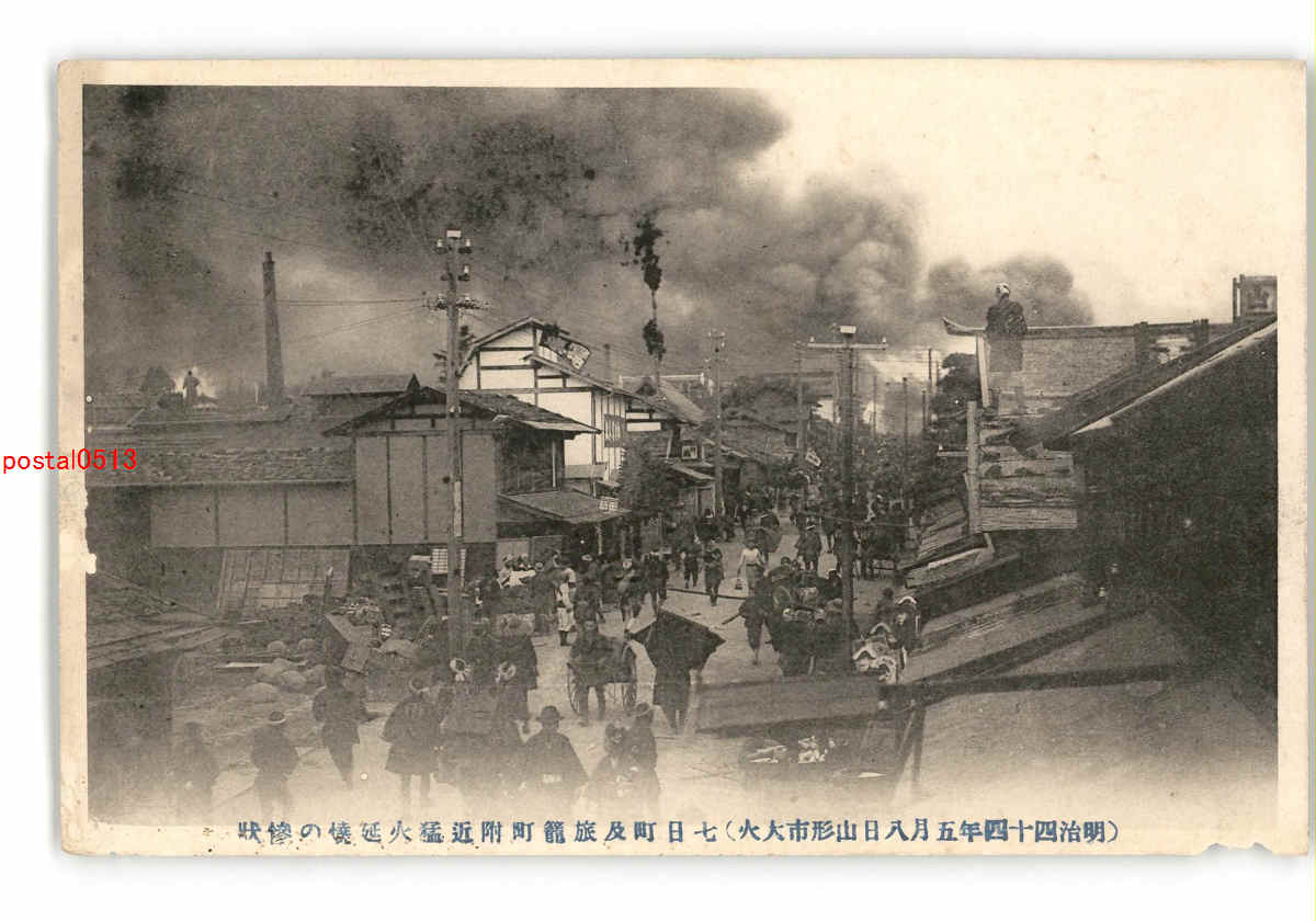 山形 明治44年5月8日山形市大火 七日町及旅籠町附近猛火延焼の惨状 *剥がれ傷み有り