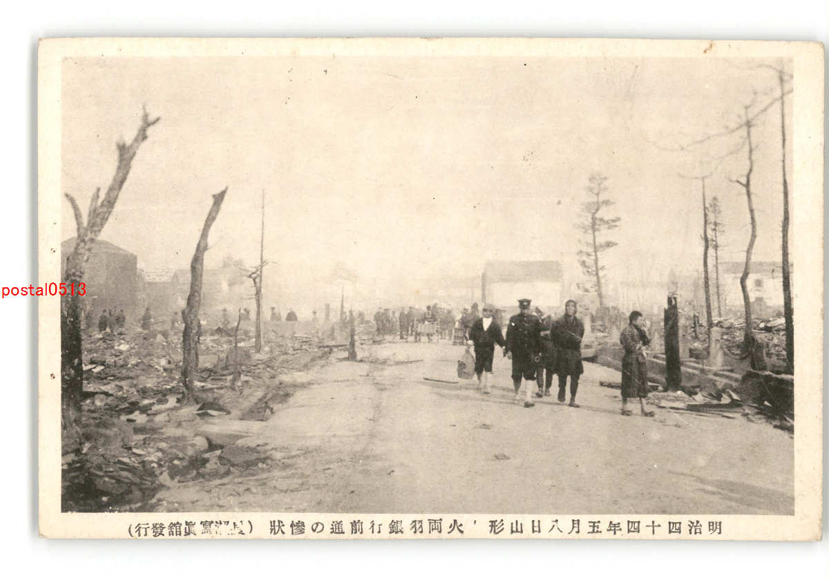 山形 明治44年5月8日山形大火両羽銀行前通の惨状 *傷み有り