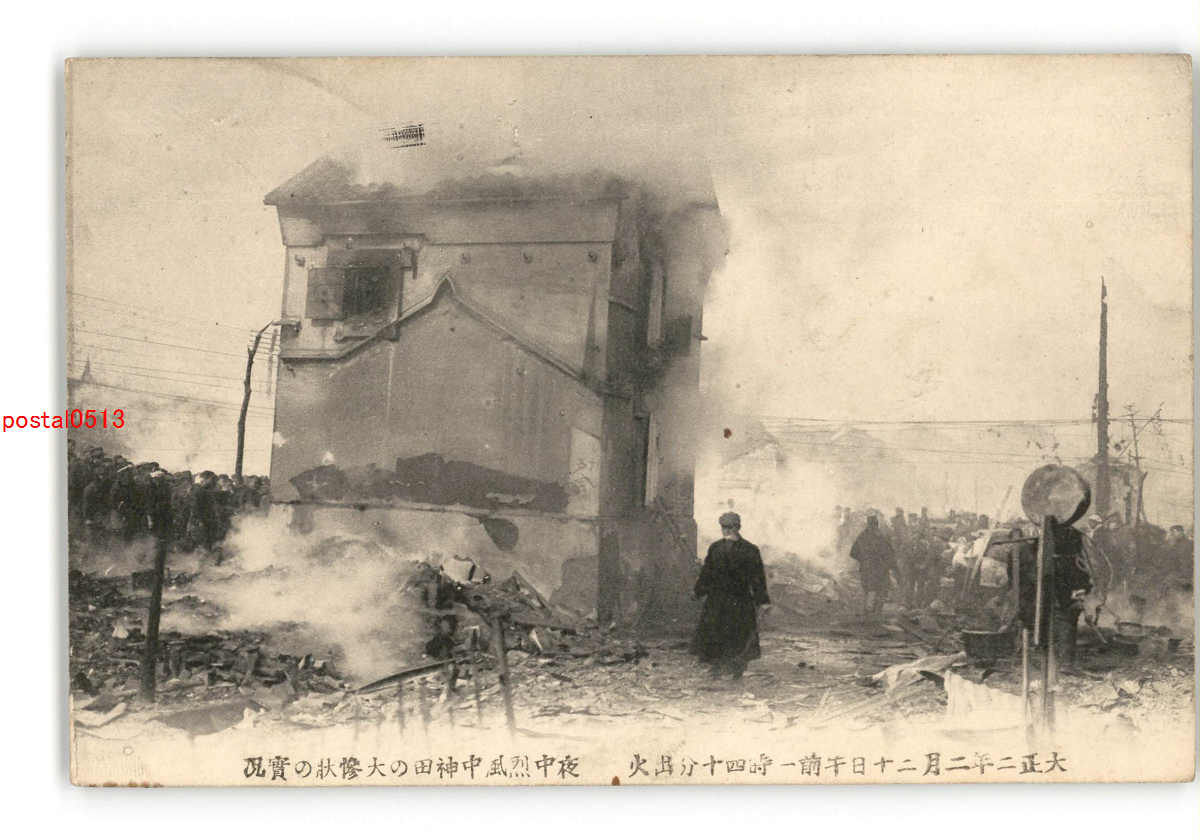 東京 大正2年2月20日午前1時40分出火 夜中烈風中神田の大惨状の実況 *折れ有り *傷み有り