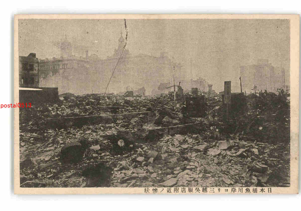 東京 関東大震災 日本橋魚川岸より三越呉服店附近の惨状 *傷み有り