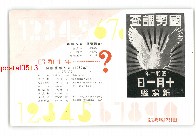 昭和10年国勢調査記念 新潟人口 1932年 *傷み有り