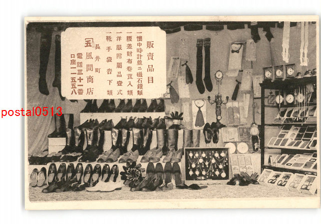 広告絵葉書 長井町 風間商店 販売品目 時計 靴 他 *傷み有り