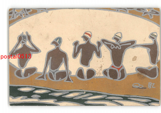 坂井紅児 アート絵葉書 水泳キャップ? *傷み有り