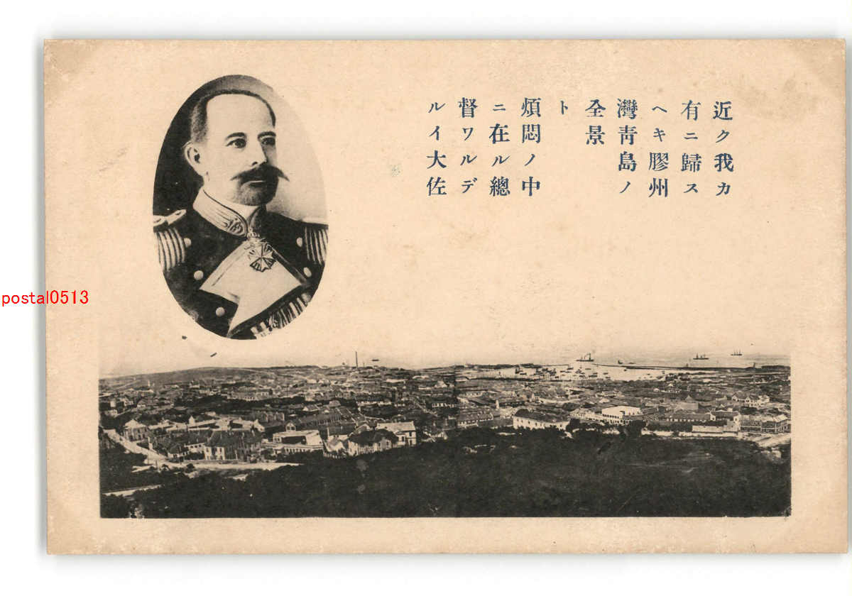満州 膠州湾青島全景 総督ワルデルイ大佐 *傷み有り