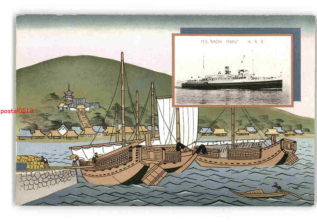 大阪商船とアート絵葉書 那智丸 *傷み有り