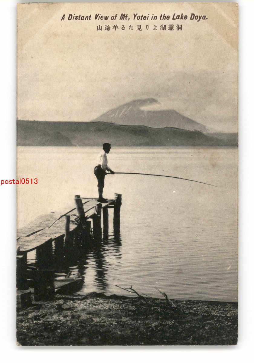 北海道 洞爺湖より羊蹄山 釣り人 *傷み有り
