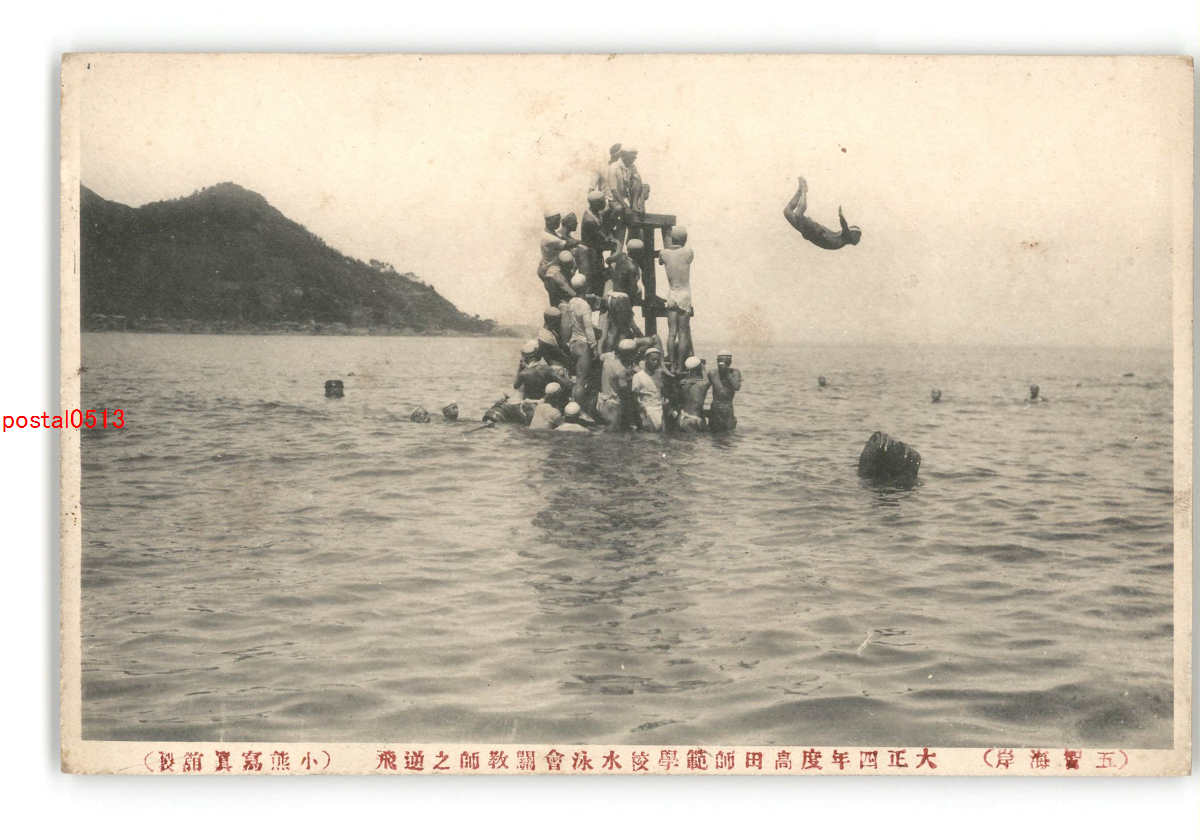 新潟 五智海岸 大正4年度高田師範学校水泳会関教師の逆飛 *傷み有り