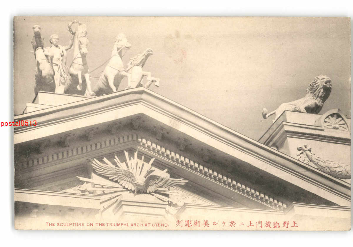 東京 上野凱旋門上に於ける美術彫刻 *剥離有り *傷み有り